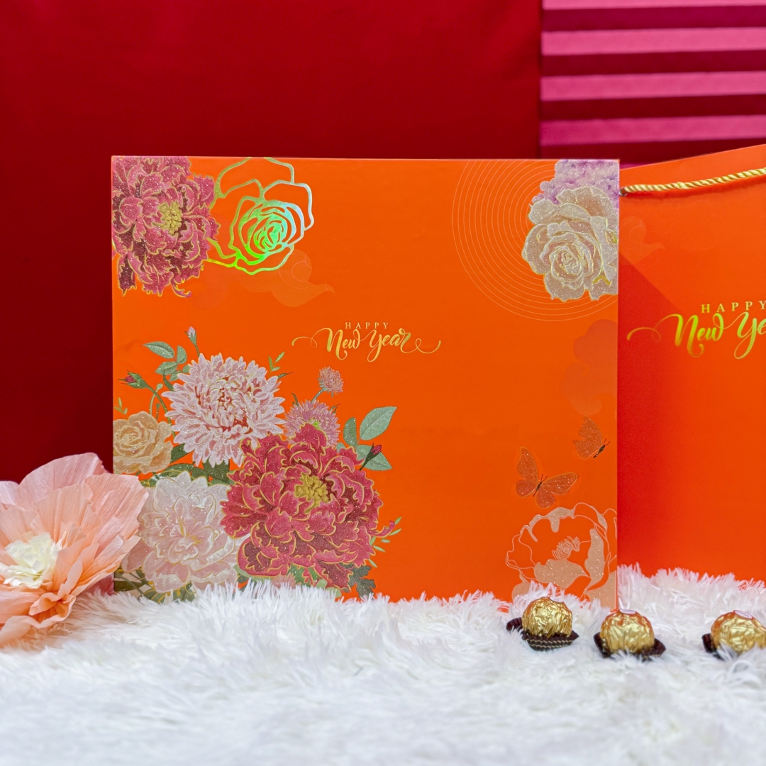 CHI TIẾT HỘP QUÀ TẾT HOA MẪU ĐƠN - HMD465