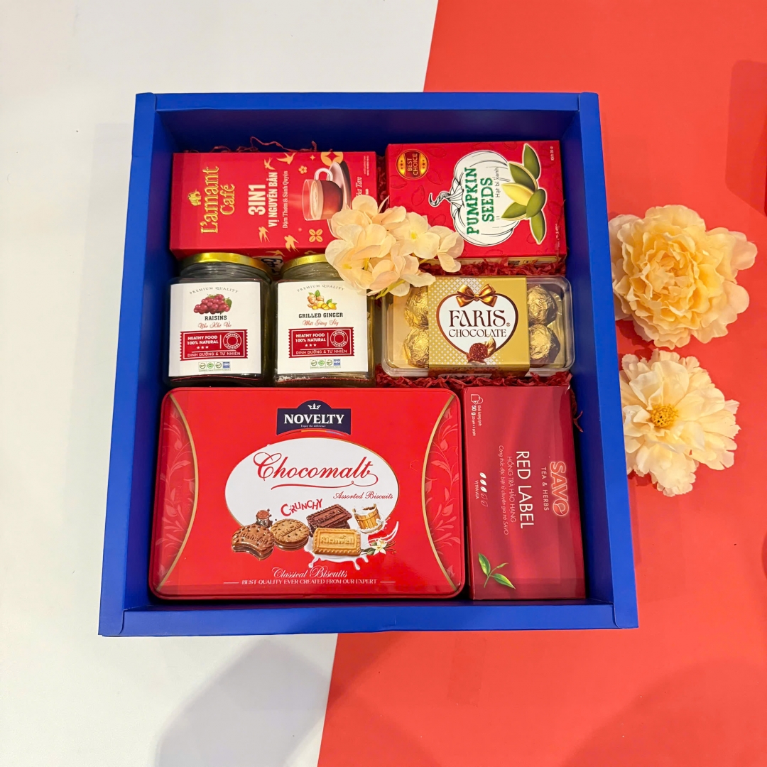 Hộp quà tết luôn là ưu tiên hàng đầu của các công ty khi lựa chọn sản phẩm quà tết cho khách hàng, nhân viên. Hộp quà tết với sản phẩm chất lượng được lựa chọn đầy đủ mặt hàng như Bánh, kẹo, socola, hạt dinh dưỡng… để tặng khách hàng tượng trưng cho sự sung túc và thịnh vượng.