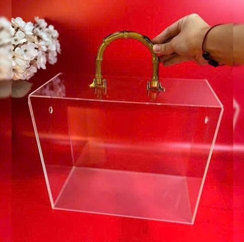 7) Hộp Mica trong suốt 37*30*17cm + túi vải đỏ