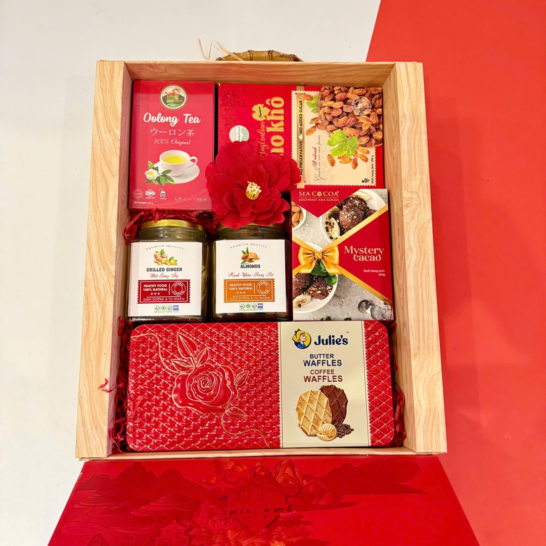 Hộp quà tết luôn là ưu tiên hàng đầu của các công ty khi lựa chọn sản phẩm quà tết cho khách hàng, nhân viên. Hộp quà tết với sản phẩm chất lượng được lựa chọn đầy đủ mặt hàng như Bánh, kẹo, socola, hạt dinh dưỡng… để tặng khách hàng tượng trưng cho sự sung túc và thịnh vượng.