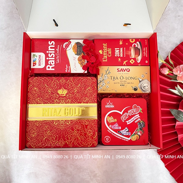 Hộp quà tết luôn là ưu tiên hàng đầu của các công ty khi lựa chọn sản phẩm quà tết cho khách hàng, nhân viên. Hộp quà tết với sản phẩm chất lượng được lựa chọn đầy đủ mặt hàng như Bánh, kẹo, socola, hạt dinh dưỡng… để tặng khách hàng tượng trưng cho sự sung túc và thịnh vượng.