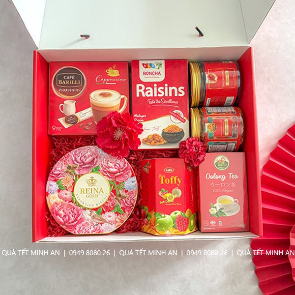 Nếu quý khách có nhu cầu thay đổi sản phẩm trong Hộp quà tết 2026 vui lòng liên hệ Quà tết Minh An.