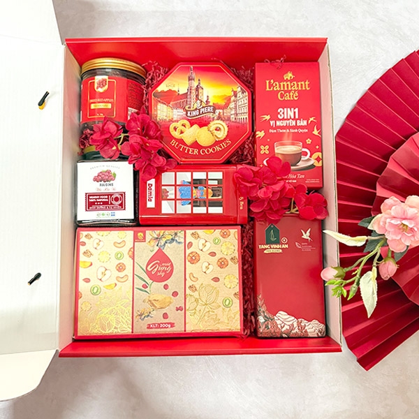 Hộp quà tết luôn là ưu tiên hàng đầu của các công ty khi lựa chọn sản phẩm quà tết cho khách hàng, nhân viên. Hộp quà tết với sản phẩm chất lượng được lựa chọn đầy đủ mặt hàng như Bánh, kẹo, socola, hạt dinh dưỡng… để tặng khách hàng tượng trưng cho sự sung túc và thịnh vượng.