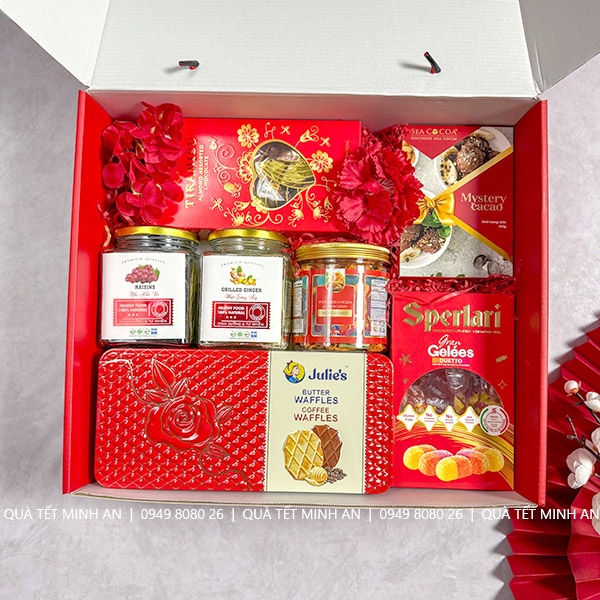 Hộp quà tết luôn là ưu tiên hàng đầu của các công ty khi lựa chọn sản phẩm quà tết cho khách hàng, nhân viên. Hộp quà tết với sản phẩm chất lượng được lựa chọn đầy đủ mặt hàng như Bánh, kẹo, socola, hạt dinh dưỡng… để tặng khách hàng tượng trưng cho sự sung túc và thịnh vượng.